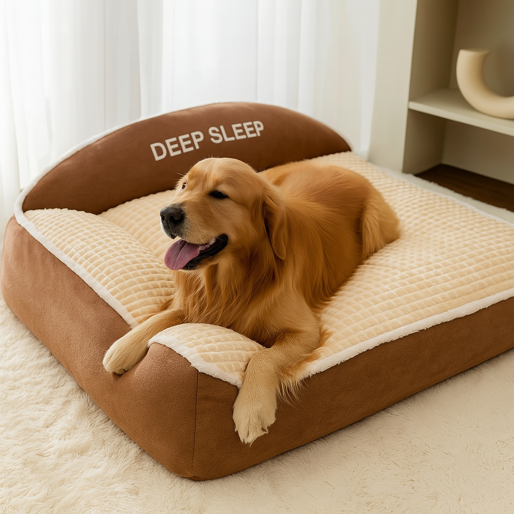 "Our dog is 9 now and struggles with stiff joints, this bed has been amazing for her. She sinks right in and sleeps so soundly. It’s soft, supportive, and easy to clean too!"