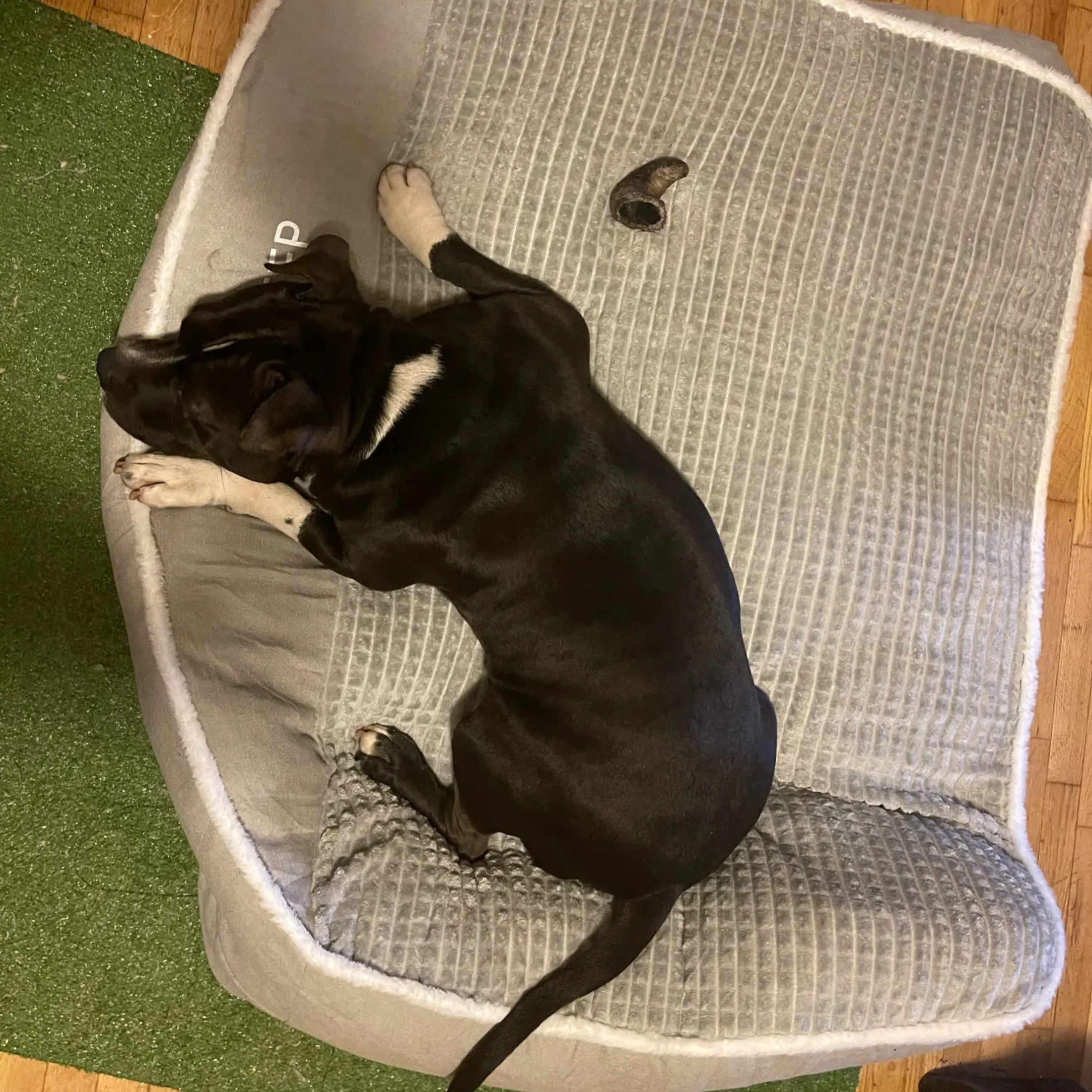 "Our dog is 9 now and struggles with stiff joints, this bed has been amazing for her. She sinks right in and sleeps so soundly. It’s soft, supportive, and easy to clean too!"