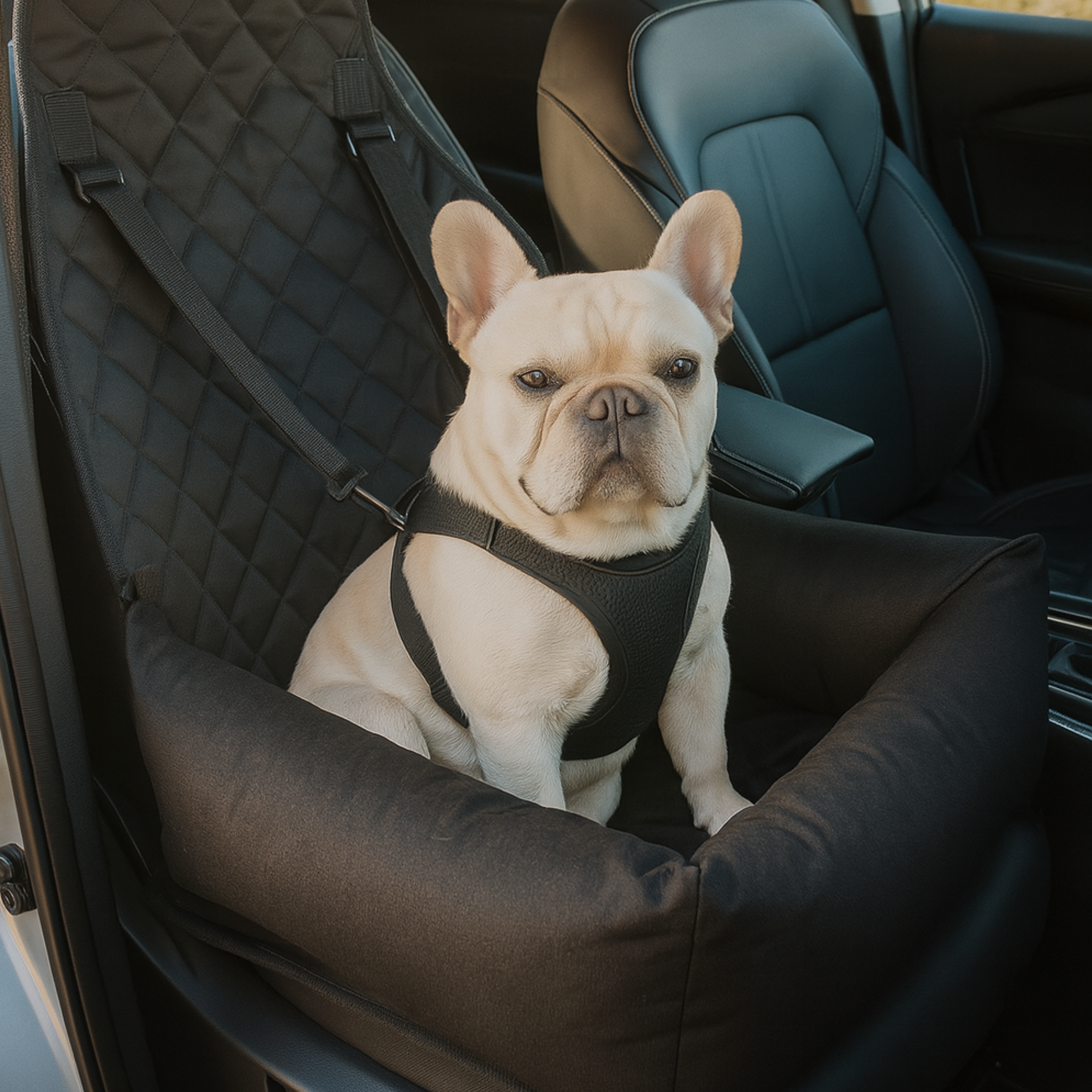 Keep your pet safe and comfy in the car with high sides, soft padding, and an integrated safety leash.